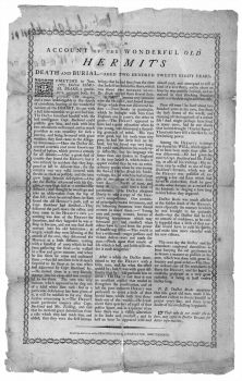 An Account of the Wonderful Old Hermit's Death and Burial, Aged Two Hundred Twenty Eight Years: an Eighteenth-century American Broadside