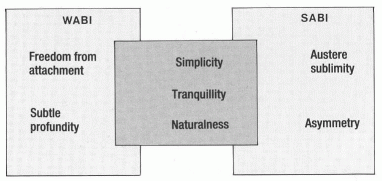 The term wabi-sabi suggests such qualities as impermanence, humility, asymmetry, and imperfection. These underlying principles are diametrically opposed to those of their Western counterparts, whose values are rooted in the Hellenic worldview that values permanence, grandeur, symmetry, and perfection. ...